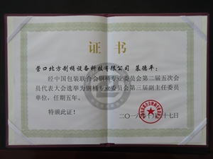 In October 27, 2016, the China Packaging Association steel drums Professional Committee the Second-fifth member Congress elected Amex petroleum & chemical Yingkou Co., Ltd. as the steel drum Professional Committee the third vice chairman enterprise, term of 5 years. Over the past few years we got this honor continuously,in the future we will continue to work on drum equipment technology research and development and upgrading, continue to promote China’s steel drum packaging industry, industrial upgrading and innovation.