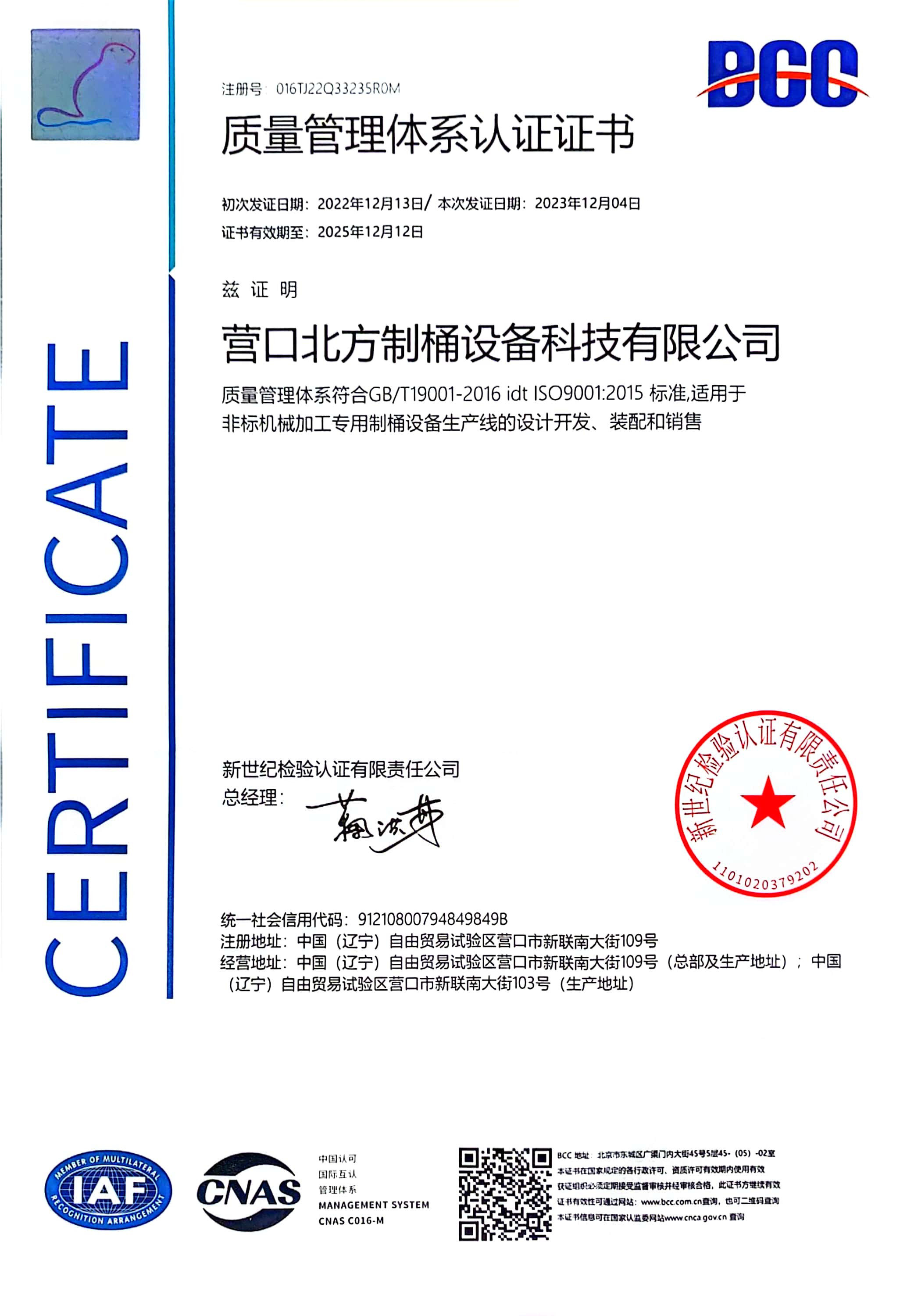 營口北方制桶設備科技有限公司是原中國石油天然氣集團公司(中石油)營口制桶廠(始建于1908年)改制后組建的股份公司,是國內(nèi)既生產(chǎn)制桶設備又生產(chǎn)鋼桶的專業(yè)公司,也是中國生產(chǎn)全套高速制桶設備的專業(yè)公司。公司是國家高新技術企業(yè),擁有自主知識產(chǎn)權的核心技術。員工180人,大專以上科技人員占公司總?cè)藬?shù)的32%。其中工程技術人員41人,高級工程師16人,工程師24人,是一家集制桶設備科研、設計、生產(chǎn)、維修、銷售和生產(chǎn)線系統(tǒng)集成為一體的技術性企業(yè),曾隸屬國務院原商業(yè)部、中石化、中石油。詳見《北方制桶設備簡介》。
