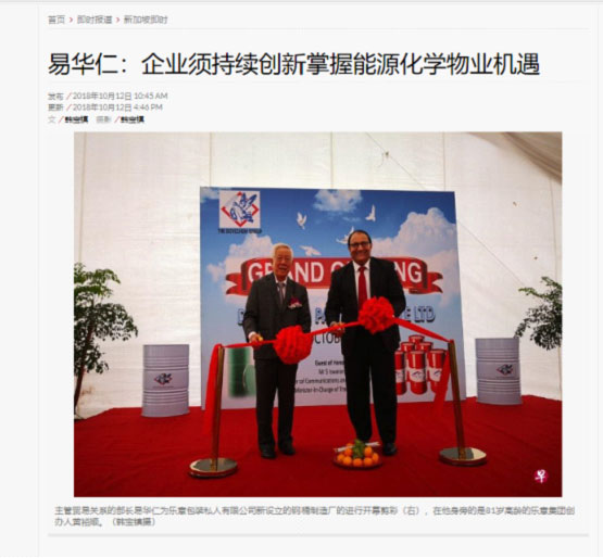 新加坡貿(mào)易關(guān)系部長易華仁先生主持開幕式時指出,工廠的開設(shè)顯示新加坡能源與化學(xué)領(lǐng)域仍持續(xù)增長。該領(lǐng)域是新加坡經(jīng)濟的主要支柱,占新加坡制造業(yè)產(chǎn)值的四分之一,聘請約二萬八千名員工。易華仁部長對樂意包裝的新工廠是以提高生產(chǎn)力為首要任務(wù)感到欣慰。在城市化與經(jīng)濟增長的推動下,亞洲地區(qū)對能源和化學(xué)物品的需求快速增長。新加坡基于地理位置和完備的化學(xué)供應(yīng)鏈,將能夠掌握在這個領(lǐng)域的機會,但要確保本地企業(yè)繼續(xù)提供創(chuàng)新方案與維持環(huán)球競爭力。易華仁部長強調(diào),提高生產(chǎn)力是維持市場競爭的關(guān)鍵,樂意包裝把打理工廠的員工從大約60人減至40人,讓其他員工去從事其他較高增值的工作,為公司做出更有意義的貢獻。工廠使用先進科技制造高品質(zhì)鋼桶,專門用來容納石油產(chǎn)品、液態(tài)化學(xué)品,以及其他有毒與腐蝕性物質(zhì)。