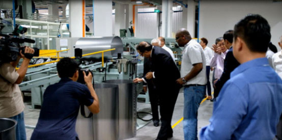 剪彩儀式后,易華仁部長參觀了工廠鋼桶生產(chǎn)線,并給予極高評價。