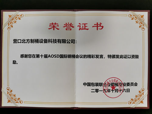 北方制桶設(shè)備發(fā)表的英文主旨演講題目是《高速、智能、環(huán)保制桶生產(chǎn)線的發(fā)展與應(yīng)用》,演講中指出,面對鋼桶行業(yè)創(chuàng)新、環(huán)保、社會責(zé)任的新使命,作為一家擁有110年歷史的全套制桶設(shè)備集成供應(yīng)商,我們深知自己的責(zé)任與使命,在產(chǎn)品設(shè)計之初就融入了節(jié)能環(huán)保的理念,主要研究成果包含以下五個方面:高速化、自動化、集成化、持久化、遠(yuǎn)程化。演講得到了國內(nèi)外同仁的廣泛關(guān)注及一致好評,并獲得了鋼桶委頒發(fā)的證書。