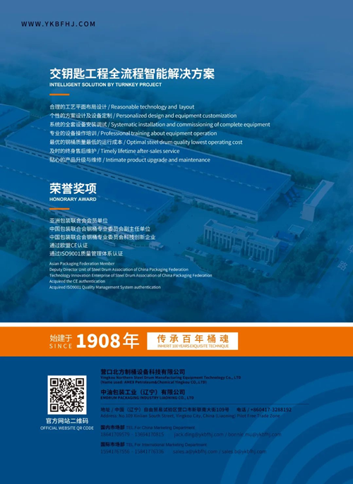 北方制桶設(shè)備始建于1908年,傳承百年桶魂,以科學(xué)技術(shù)為企業(yè)發(fā)展源動力,堅持可持續(xù)發(fā)展觀,引領(lǐng)國內(nèi)乃至國際的制桶行業(yè)嶄新思路,不斷刷新中國鋼桶包裝行業(yè)標準和產(chǎn)品規(guī)范。